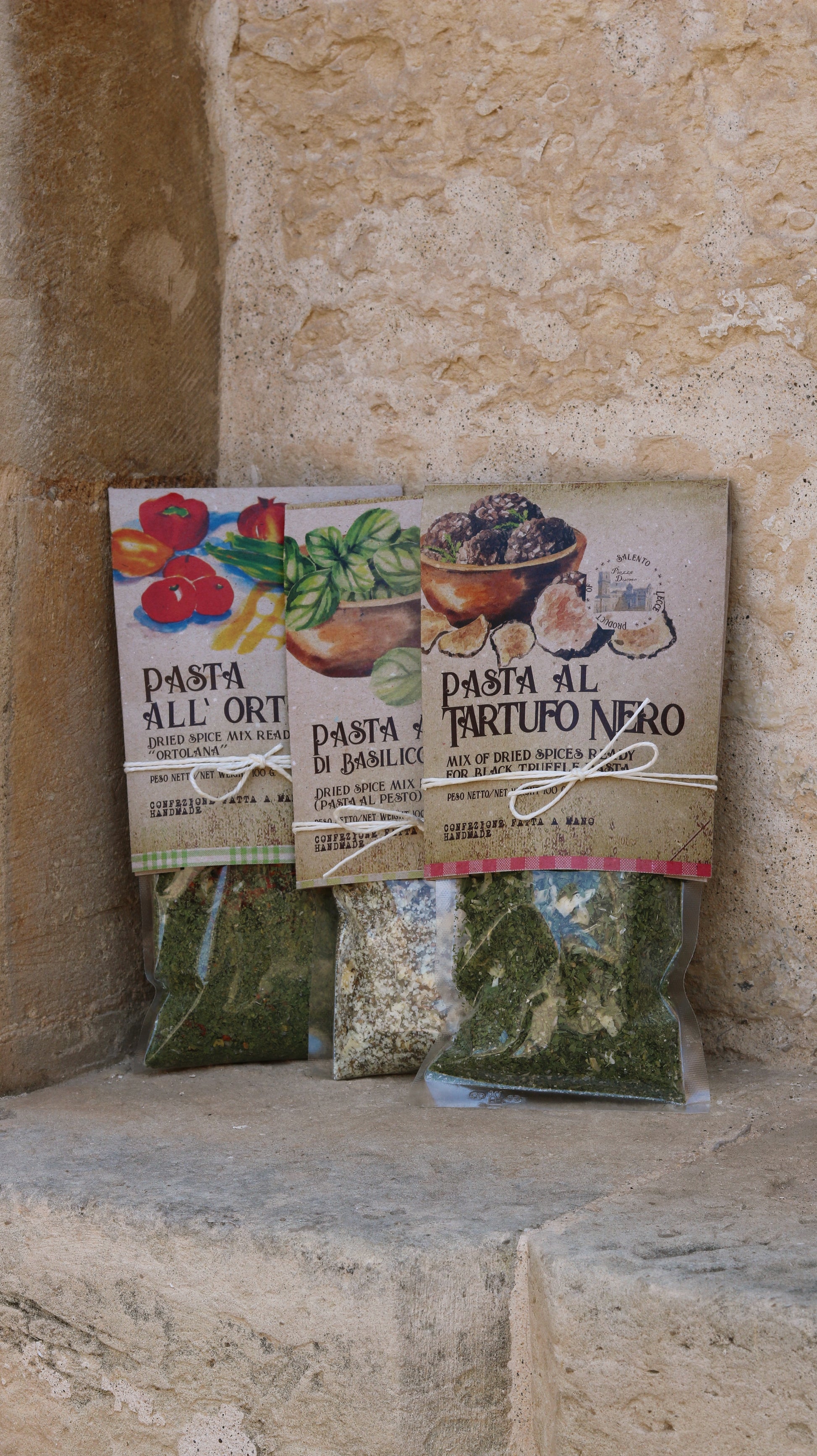 Die Pasta al Tartufo Nero stammt aus einer traditionsreichen Famiglia aus Kalabrien, die mit amore und jahrhundertealter Erfahrung die wertvollsten Schätze der italienischen Küche bewahrt. Diese luxuriöse Gewürzmischung würdigt den schwarzen Trüffel - den edlen "schwarzen Diamanten" der Gastronomie, der zu den kostbarsten Zutaten der Welt zählt. Jede Packung wird handgemacht mit traditionellen Methoden hergestellt, wie es schon unsere Nonne getan haben, um die geheimnisvolle Tiefe und Eleganz der italienischen Trüffelwälder zu bewahren.