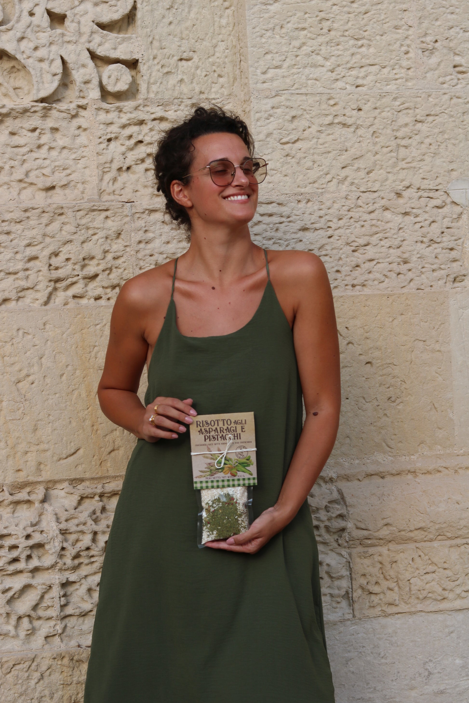 Diese edle Risotto-Kreation vereint den besten Carnaroli-Reis (95%) mit Spargel (1,5%), Petersilie, Mandeln und den kostbaren Pistazien (0,8%) aus Sizilien. Verfeinert mit Knoblauch, Zitrone und rosa Pfeffer entsteht ein Risotto von außergewöhnlicher Raffinesse, das die zarte Bitterkeit des Spargels mit der cremigen Süße der Pistazien verbindet. Diese sorgfältig komponierte Mischung fängt das Beste aus Nord- und Süditalien ein.